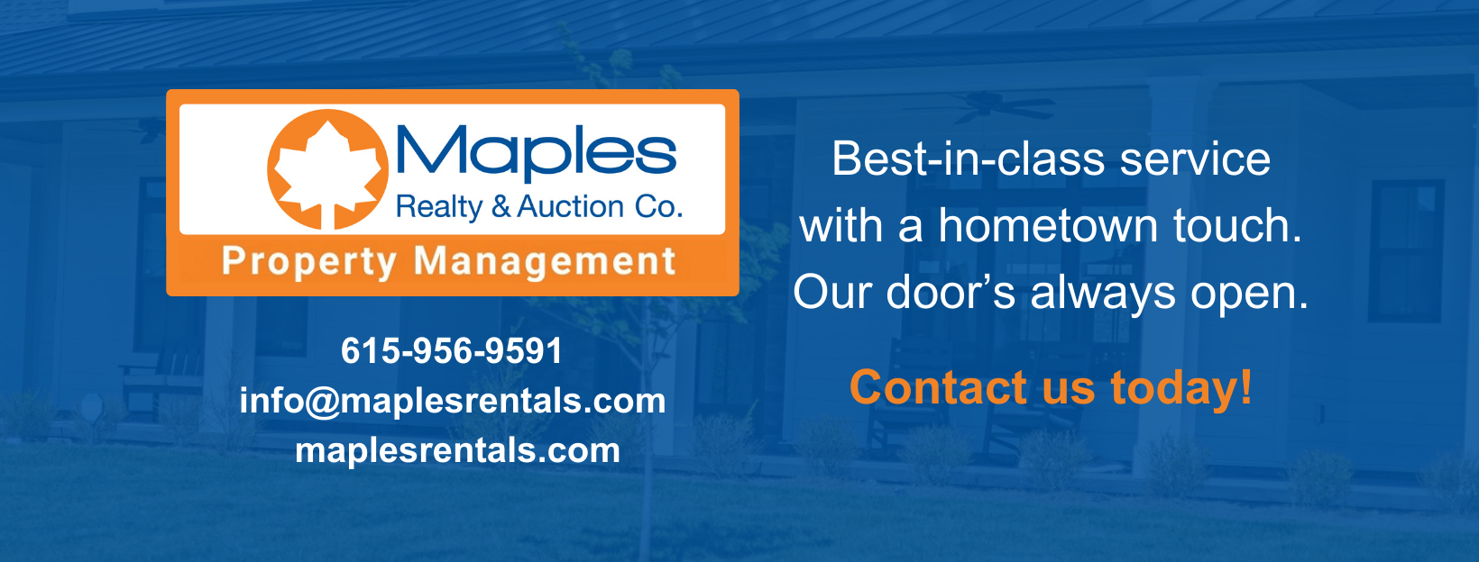 The Maples Property Management office is in the Maples Realty & Auction Co. building located at